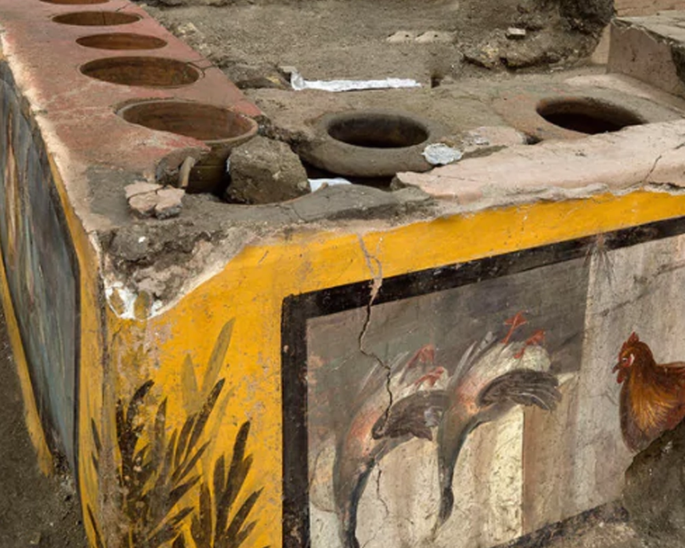 Sorrento, oggi luogo vivo e attivo, custode di una tradizione gastronomica che ha resistito all’omologazione e all’industrializzazione alimentare, dialoga costantemente con il passato stratificato e silenzioso di Pompei, che pure continua a parlare attraverso gli scavi, i reperti, i resti di cucine, forni, piatti, utensili, graffiti.